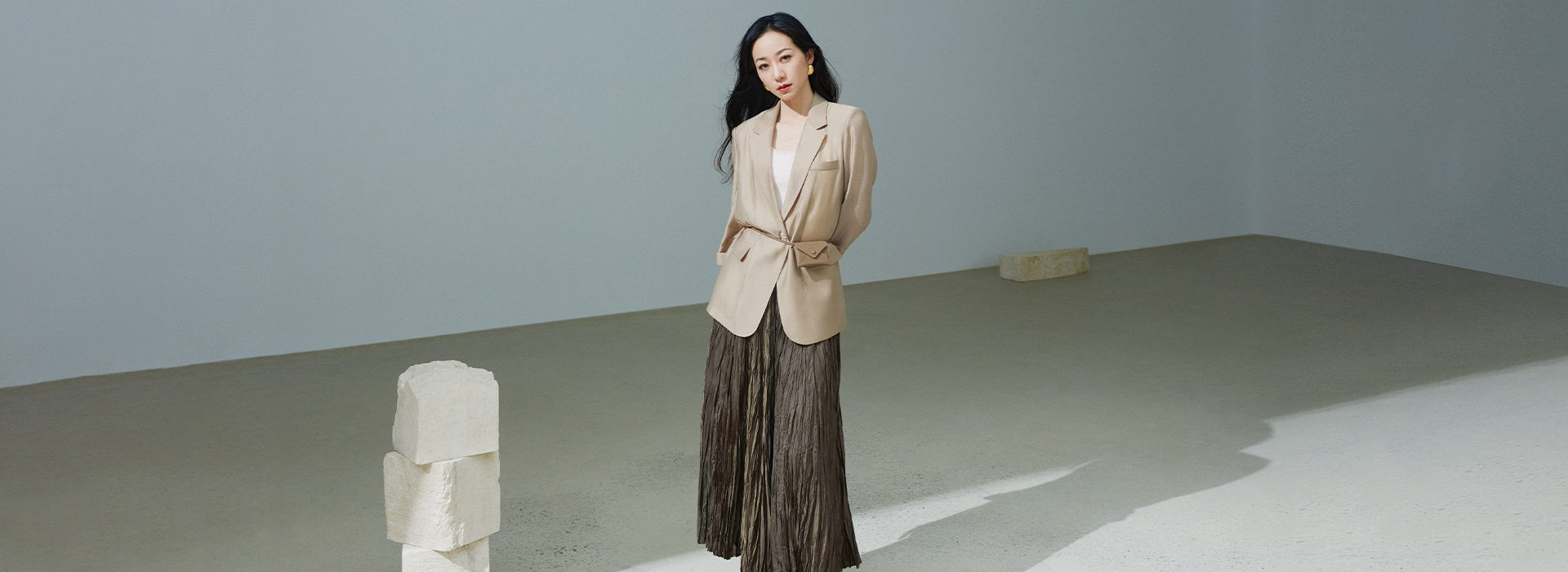 這一季CHIU?SHUI的秀場是極致純凈與神秘的結(jié)合體,就好比一個連接過去與未來的時光隧道。簾布上浮動的剪影,預示著時間不露聲色的緩慢流逝。展現(xiàn)了靜謐與動感的完美融合。